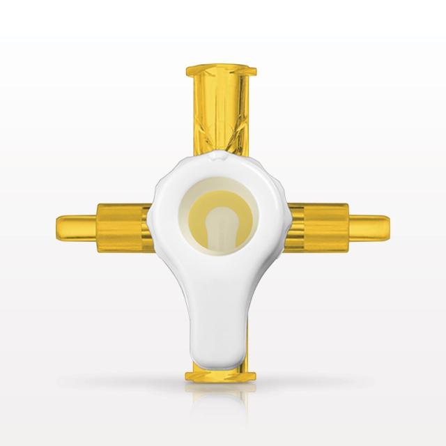 RondelO™ 2-Way Stopcock Manifold with 2 Female Luer Locks, Tubing Ports, Yellow