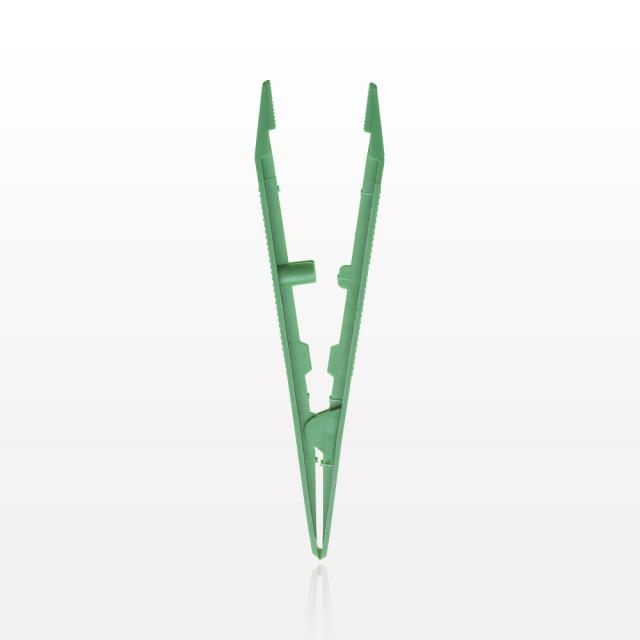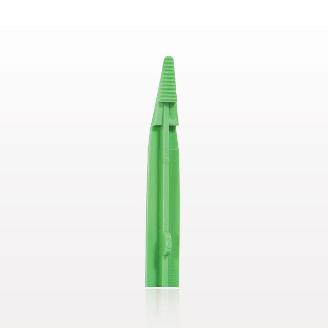 Single-Use Tweezer Forceps, Flat Pointed Tips, Green